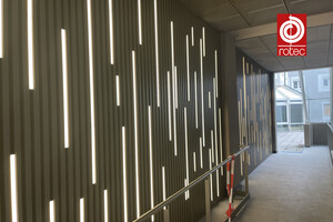 rotec Monteure bei der Installation eine Linarte Lamellenwand mit integrierter LED-Beleuchtung in Berlin Friedrichshain.